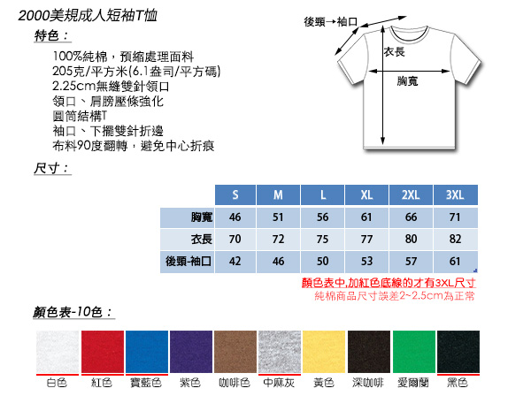 規寬版2000美國棉T恤,