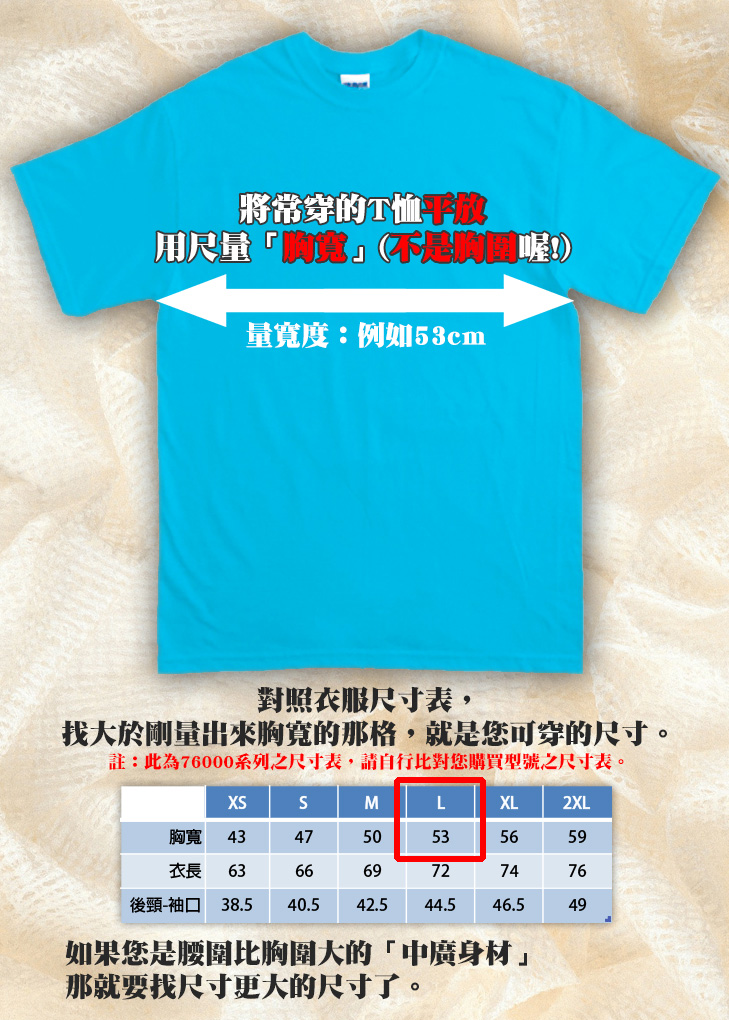 每一種衣服版型雖然不同,但是選擇尺寸,只需要注意衣服的「