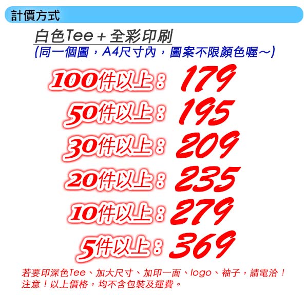 - 求婚、慶生、辦party的少量、部分客製化T恤