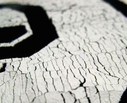 這可不是印壞了,或是品質不好,放太久裂開了!而是印出來就有陳舊、龜裂的感覺,是一種很特別的印花效果!