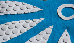 更特別的印花,還可以在印花發泡後,在印上一層顏色,就會像是浮雕效果的圖案出現。